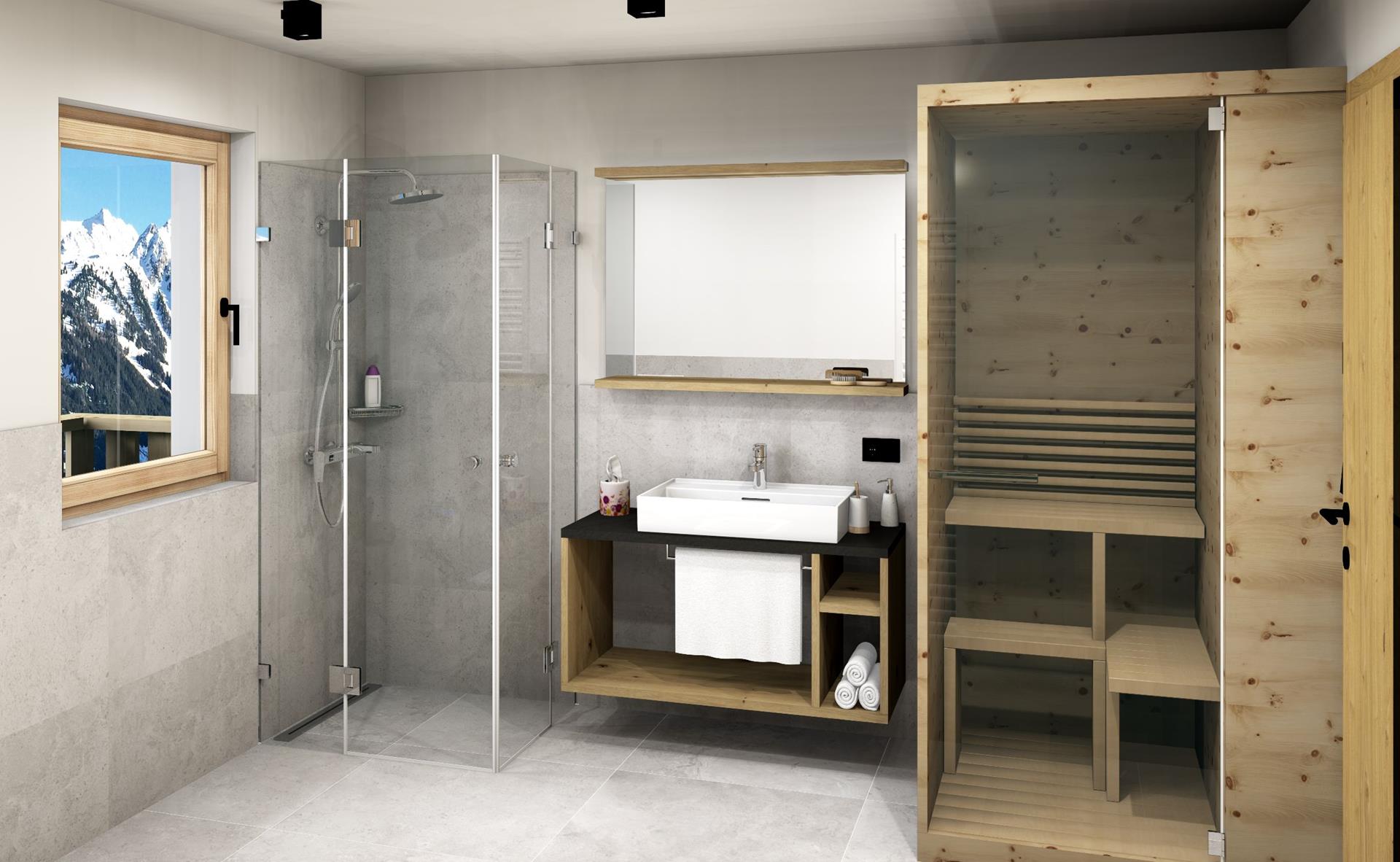 - Geräumiges Badezimmer mit Regendusche, WC, Bidet, Föhn und Hydrosoft-Infrarotkabine mit Wasserdampf – für wohltuende Entspannung