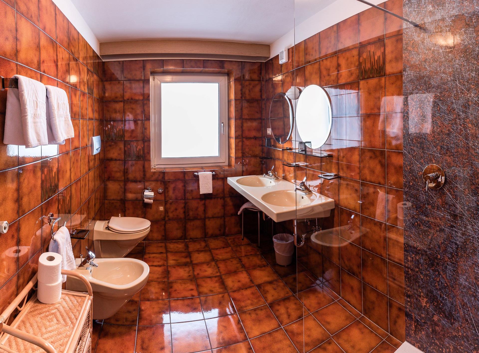 - large bathroom with shower, window, bidet and WC