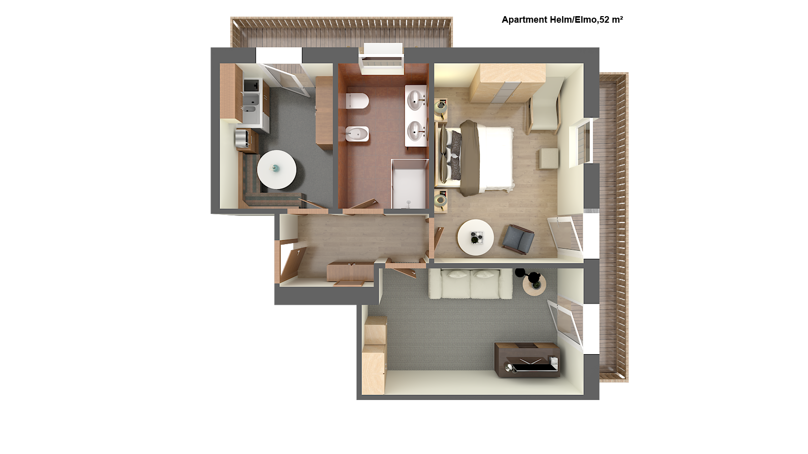 - 2 balconies with view to the Helm and the Sesto mountain sundial