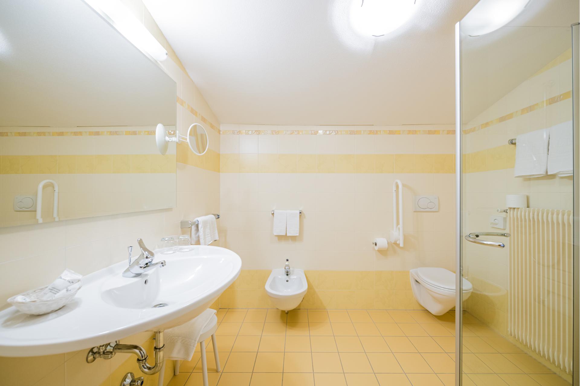Telephone, satellite television, desk, safe, bathroom, shower/WC, bidet (not in all rooms), hair dryer, balcony with view of Sexten Sundial.